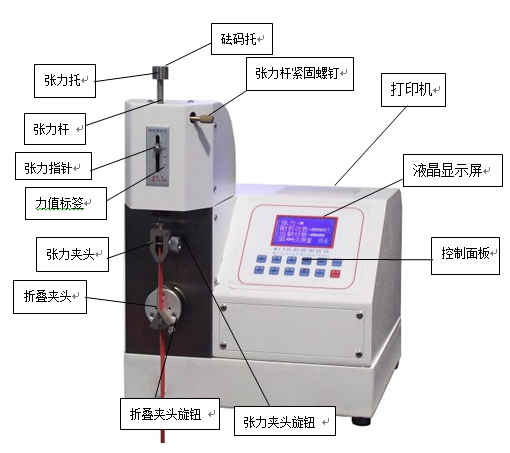 將所配給用戶的砝碼放在張力托上,(小的為4.9N,大的為9.8N)看張力指針是否指在對應(yīng)刻度上,如有偏差,可用調(diào)節(jié)旋鈕調(diào)節(jié),使指針對應(yīng)標準刻度線,而后再將鎖緊旋鈕順時針鎖緊。(調(diào)節(jié)旋鈕鎖緊旋鈕的位置見儀器外觀圖)。