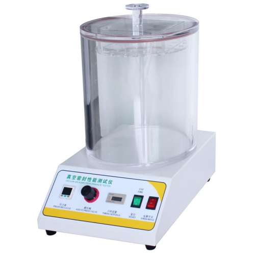通過(guò)對(duì)真空室抽真空,使浸在水中的試樣產(chǎn)生內(nèi)外壓差,觀測(cè)試樣內(nèi)氣體外逸情況,以此判定試樣的密封性能;通過(guò)對(duì)真空室抽真空,使試樣產(chǎn)生內(nèi)外壓差,觀測(cè)試樣膨脹及釋放真空后試樣形狀恢復(fù)情況,以此判定試樣的密封性能。